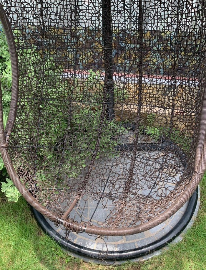 - Xích đu trứng với nhiều chỗ bị đứt sợi mây