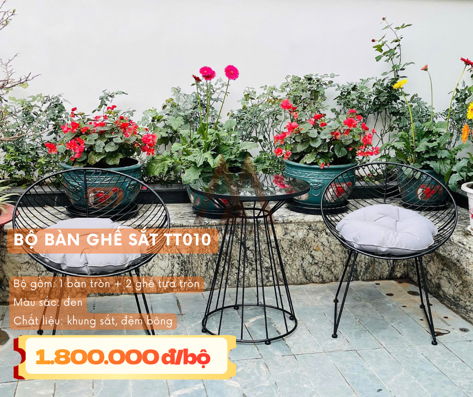 - Bộ bàn ghế sắt lưới sân vườn: Chỉ từ 1.800.000đ/bộ.