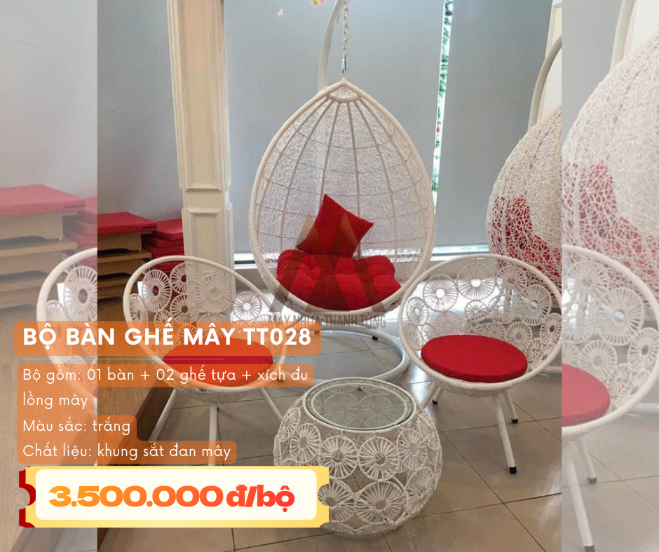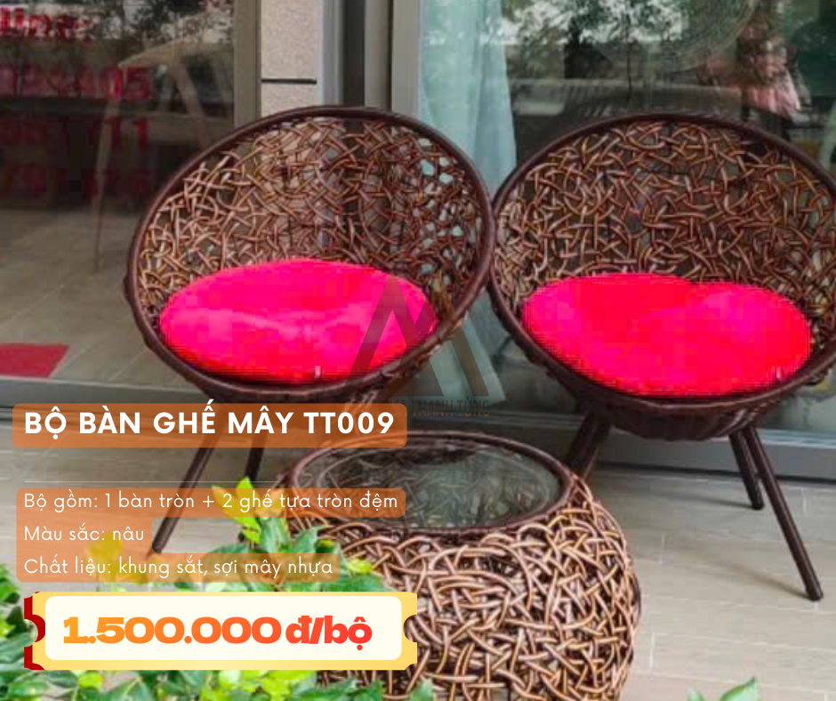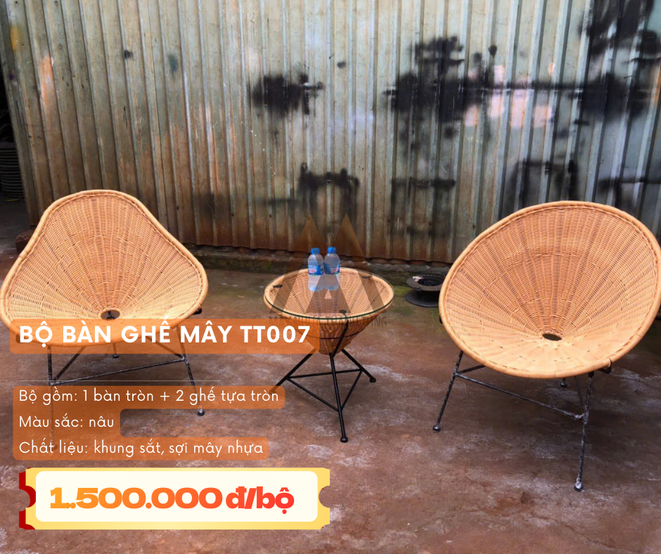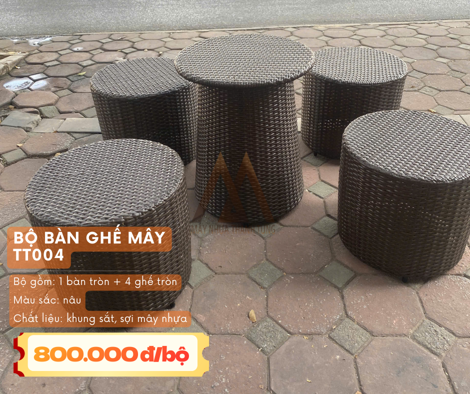 - Bộ bàn ghế mây nhựa (gồm bàn và 4 đôn tròn): Giá siêu mềm chỉ 800.000đ/bộ.