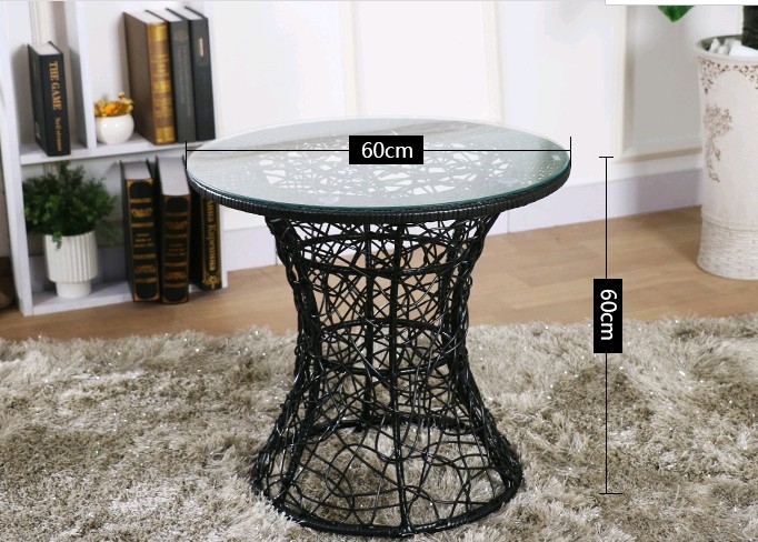 • Kiểu dáng: Ghế đan rối hình trứng, bàn trụ đứng mặt kính cường lực