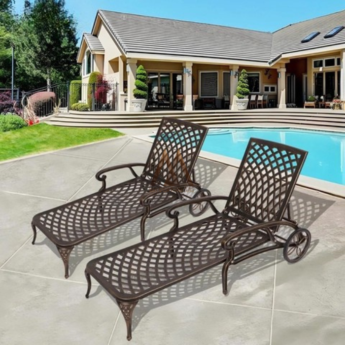 Chất liệu: Toàn bộ khung được làm từ nhôm đúc sơn tĩnh điện cao cấp. Đây là vật liệu chuyên dụng cho ngoài trời với khả năng chống gỉ sét tuyệt đối, không bị ăn mòn bởi nước hồ bơi hay tác động của thời tiết khắc nghiệt.