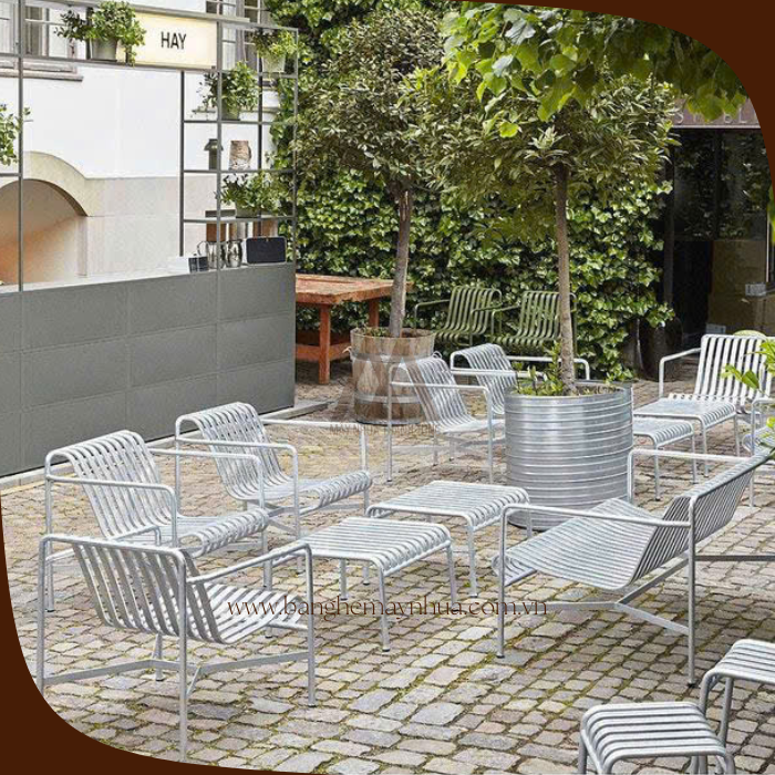 Với khả năng chống chịu thời tiết, bộ bàn ghế TT53 rất phù hợp để sử dụng ở không gian ngoài trời như: