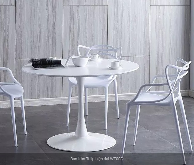 + Bàn tròn hoa tulip ứng dụng cao: Bàn tròn Tulip được nhiều khách hàng như gia đình, nhà hàng ăn nhanh, quán cafe, trà sữa, bánh ngọt yêu thích bởi thiết kế hiện đại, màu trắng trung tính nhưng với những đường cong uyển chuyển là điểm nhấn chủ đạo khi trang trí không gian căn phòng.
